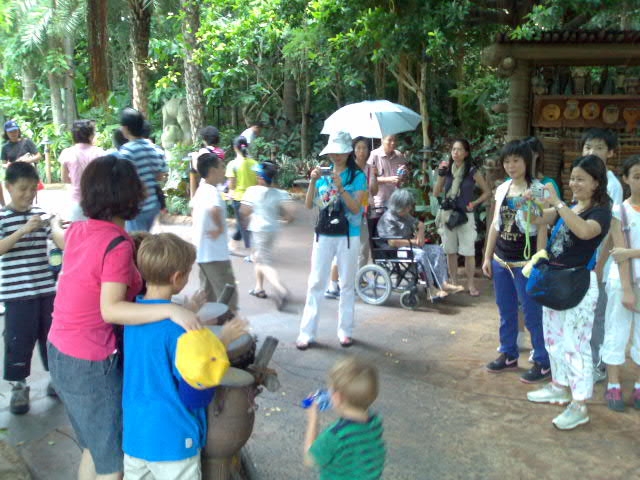| Bij ons bezoek aan Disneyland Hong Kong waren Hidde, Bram en Thijs de grootste toeristische attractie - dit komt omdat 'Main Land' Chinezen blond haar en blauwe ogen zeer bijzonder vinden. We moeten Bram soms letterlijk lostrekken. |